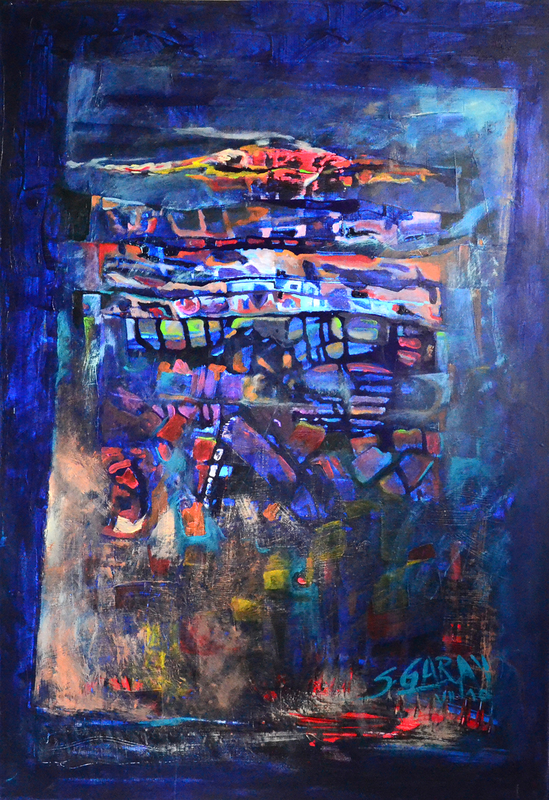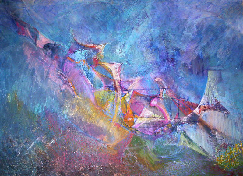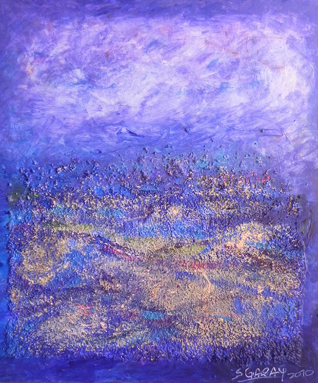 Materia e imágenes y los hago propios (remiten a mi ser) y justo allí, desde el centro mismo de mi universo, proyecto las líneas de mi vida en estas formas azulinas de claridad y de profundidades absolutas.